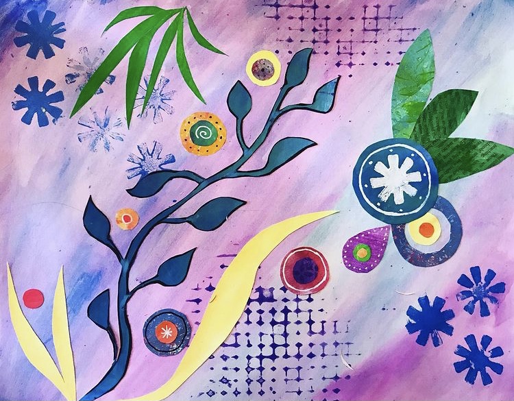 After I create the background, I add shapes from papers I hand color myself.